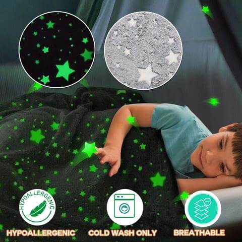 BLANKGLOW! E bërë me materialet luminescente, ky batan magjik bën gjumin tuaj si në hapësirë! Materialet luminescente lëshojnë një dritë të gjelbër relaksuese gjatë natës!