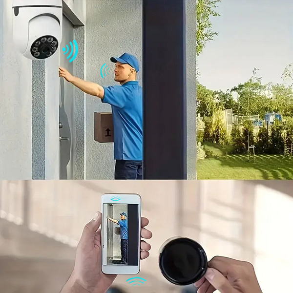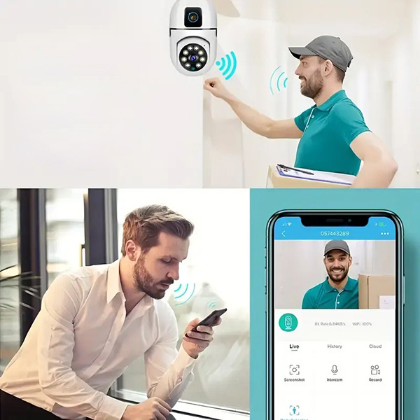 Me altoparlantin e interfonit të BULBCAM, mund të flasësh direkt nga celulari me këdo që është jashtë derës. Mund të japesh udhëzime edhe për personelin e dorëzimit ose të udhëzosh mysafirët nëse je i zënë ose larg, duke e bërë më të lehtë menaxhimin e vizitorëve nga çdo vend.